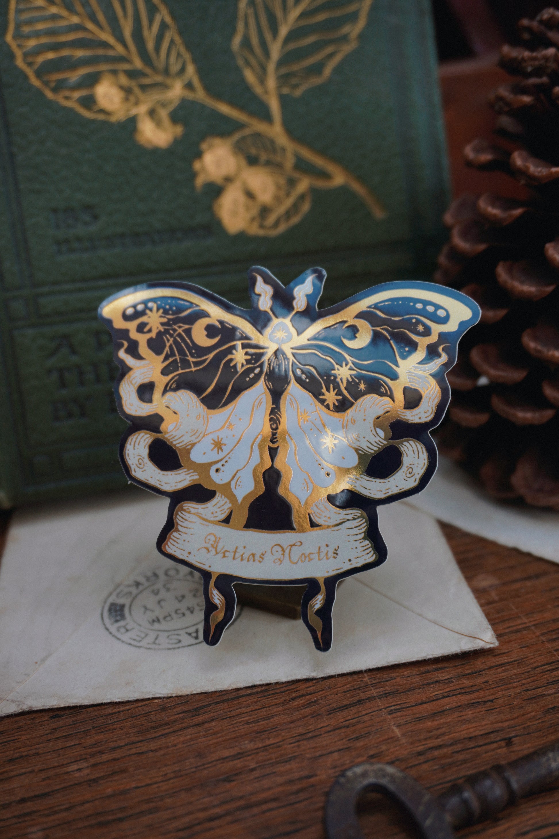 Actias Noctis the Moonlight Moth sticker | Gold Mirror details