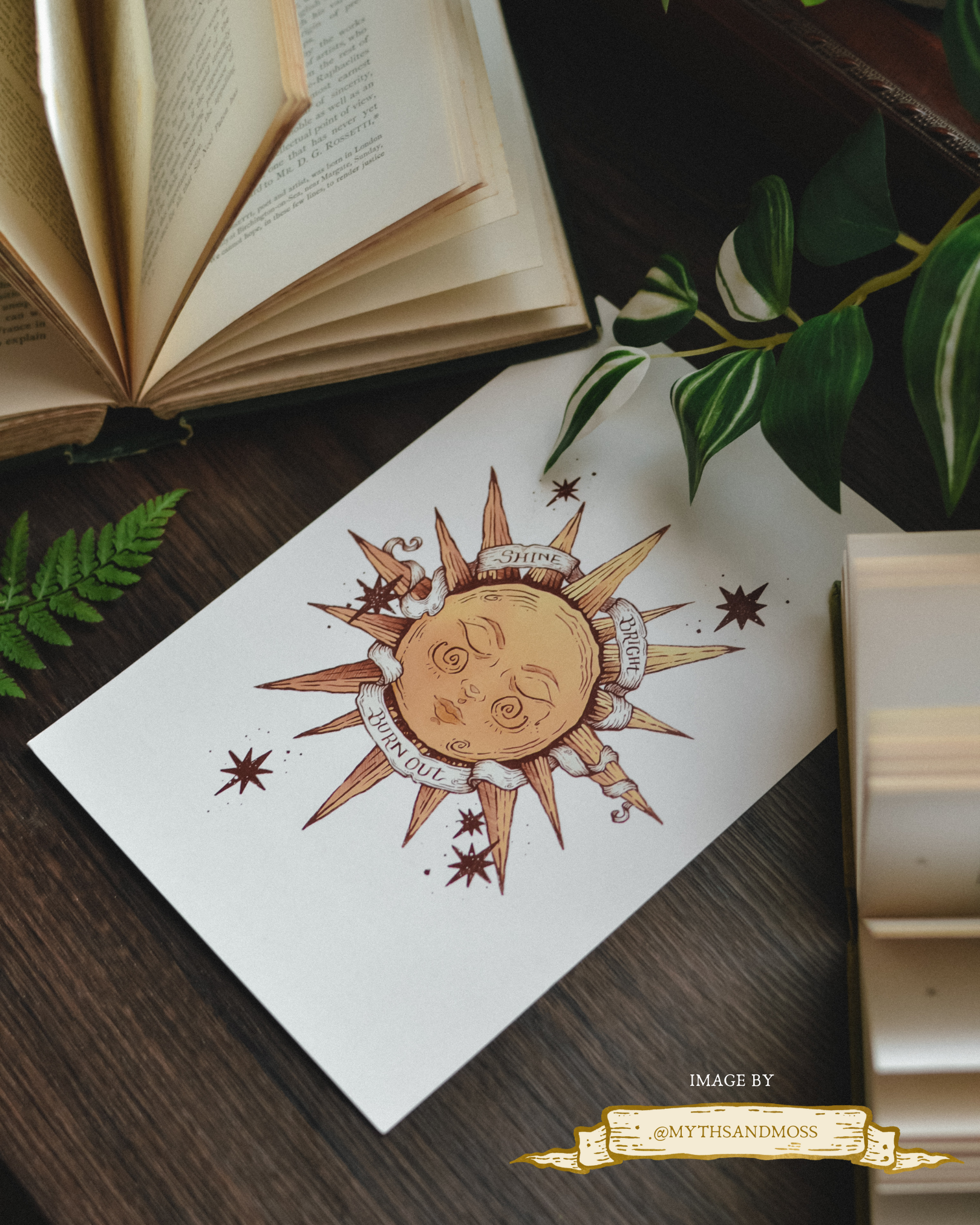 Our lovely 'Shine Bright Burn Out' sun design in a vintage style art print.